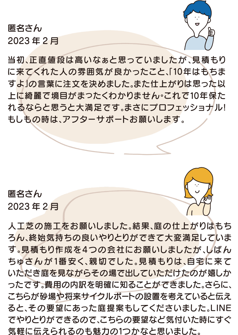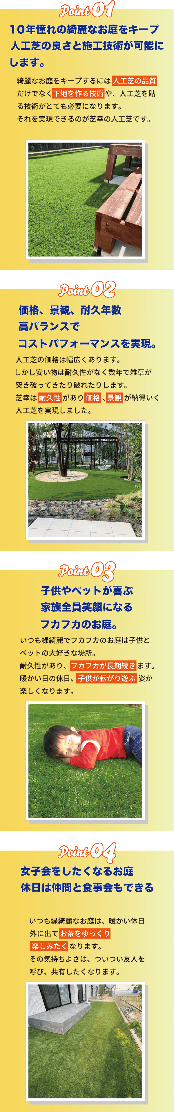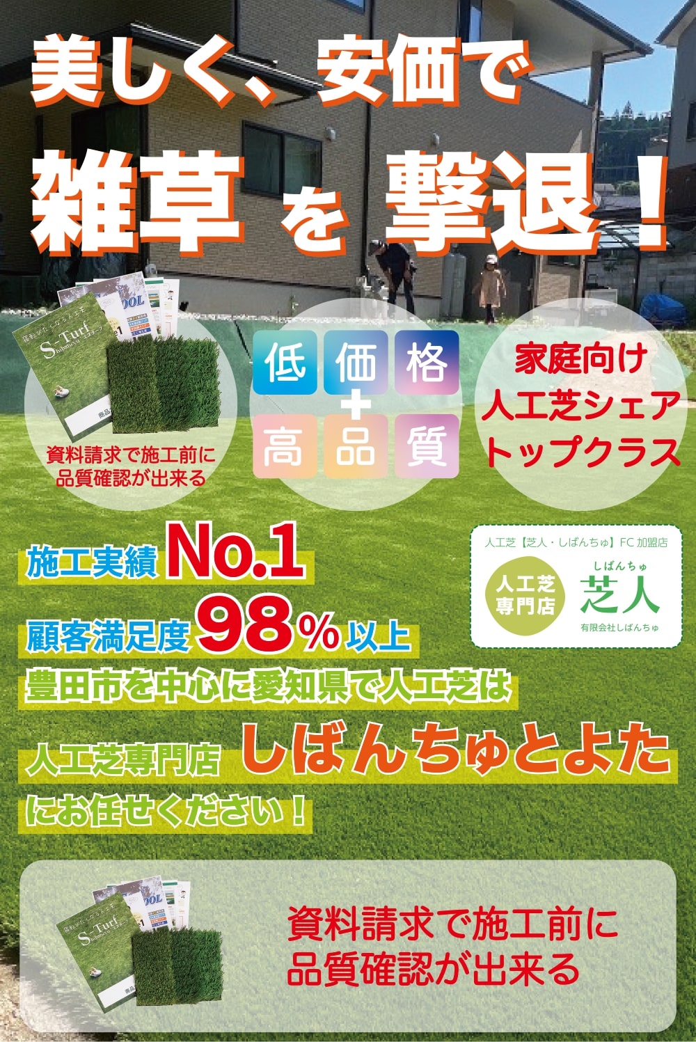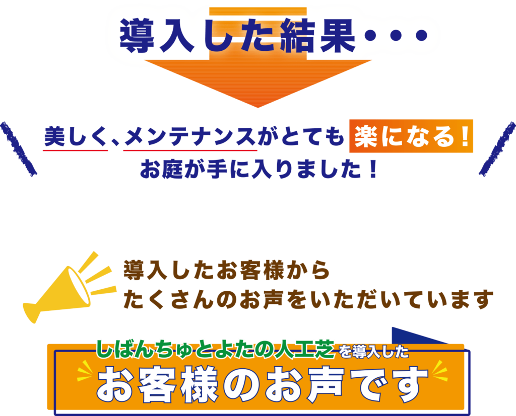 ※人工芝を使用すれば実現する訳ではありません。しばんちゅとよたが使用するしばんちゅの人工芝としばんちゅとよたの施工技術で実現します。